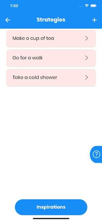Inside MP appen you will meet ”empty spaces” where you can enter information regarding your ”symptoms” of crisis, which can be linked to individualized ”strategies” for coping with "symptoms". It also includes direct links to selected contact persons and hotlines.
