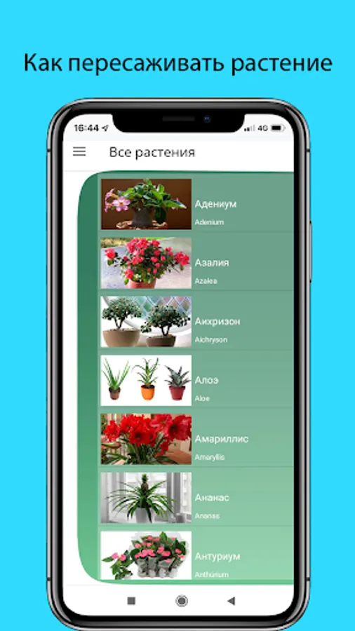 In this application, you will find a selection of the most common indoor plants with brief descriptions of their features.