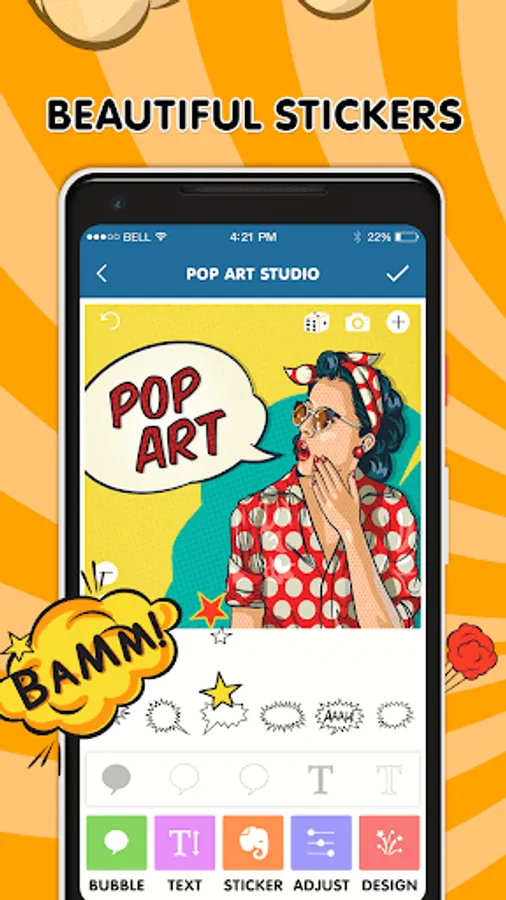 Every art is different with shades and effects in pop art, make stylised photos with an amazing pop art photo editor in the simplest way, just capture photo or select from gallery and apply pop art effects as you like, save and share. you will feel like pop art artist with this app with different pop art designs.