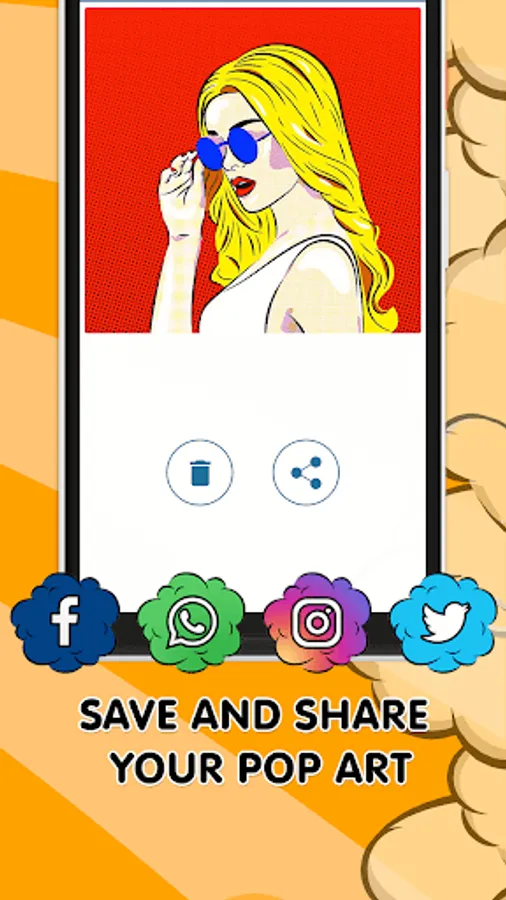 Create artistic photos with popart photo editor with different amazing pop art effects, share to social networks to get more likes and lovely comments.