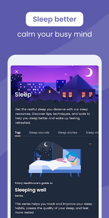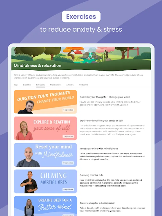 We want to give you access to the best toolkits available to improve your mind. Teaming up with our friends at Priory, world leaders in mental health, we have created interactive tools and coping strategies, using cognitive behavioural therapy (CBT), customised for digital use. Together, we’ll guide you through life’s challenges and help you take care of yourself. Imagine the possibilities.