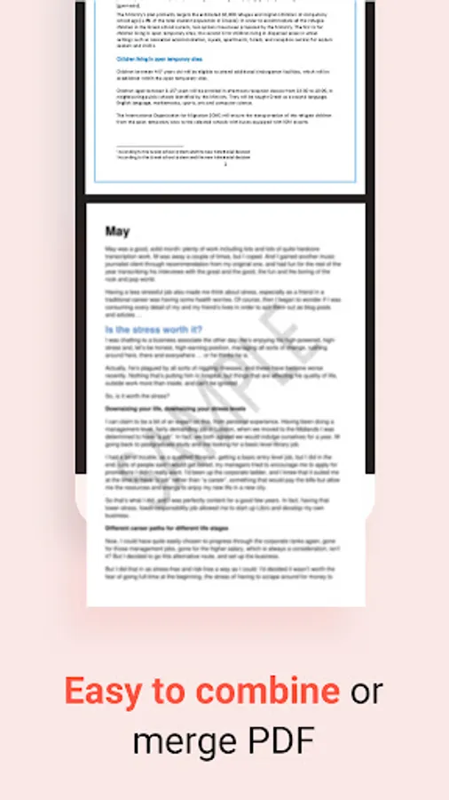 The combine PDF app allows you to combine multiple PDF files in any order you want for easy viewing and sharing.