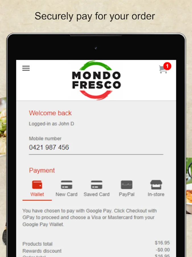 You can also order online from our web site www.mondofresco.com.au using your smartphone, desktop, laptop, and tablet computers.