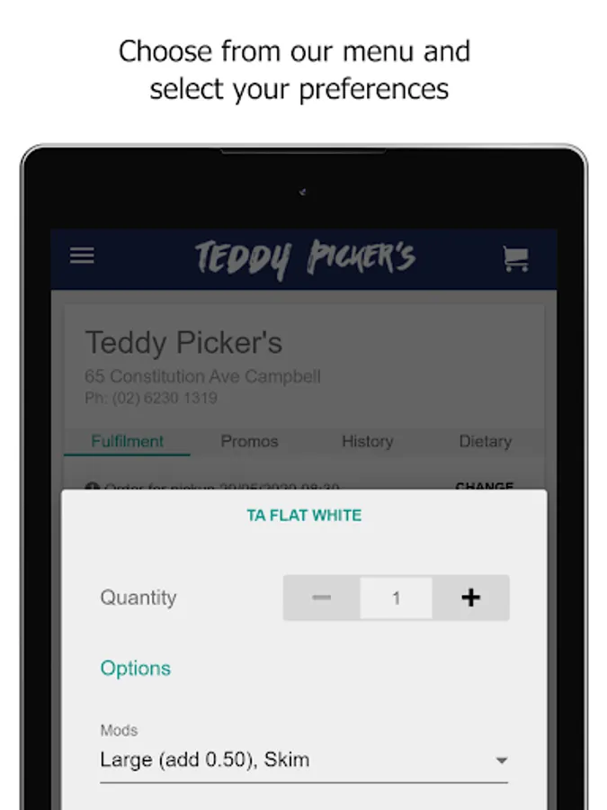 Order and pay for your goods from Teddy Picker's Cafe with our Online Ordering App so you can skip the wait. Fast, easy to use, and hassle-free.