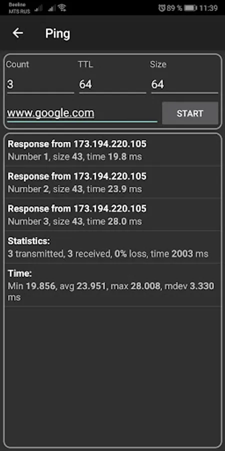 App contains common network tools those help to make diagnostics:
