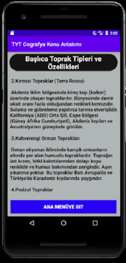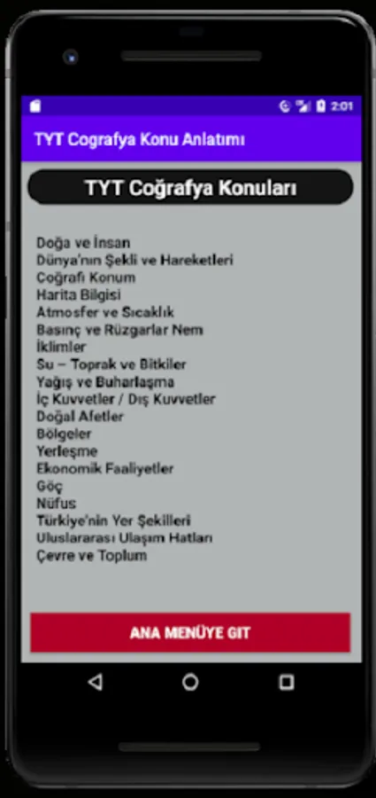 Working with TYT Geography is now very easy. Thanks to the application we developed, you can study and solve questions:) Success ..