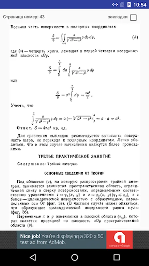 The second practical lesson. Calculation of volumes and surfaces by means of a double integral. Applications of the double integral to the problems of mechanics.