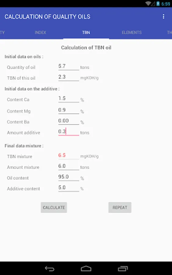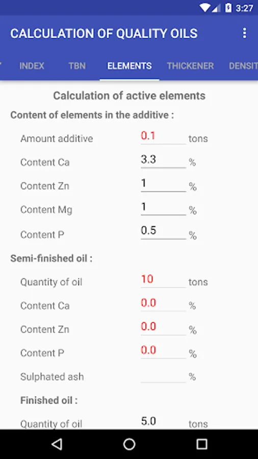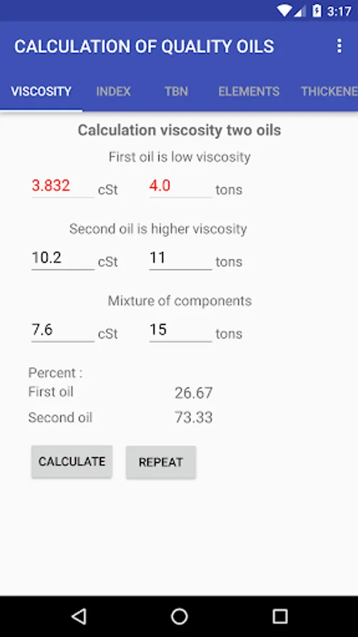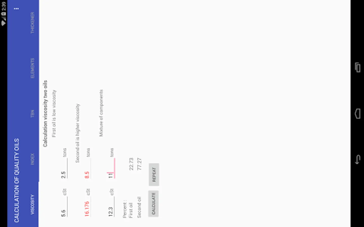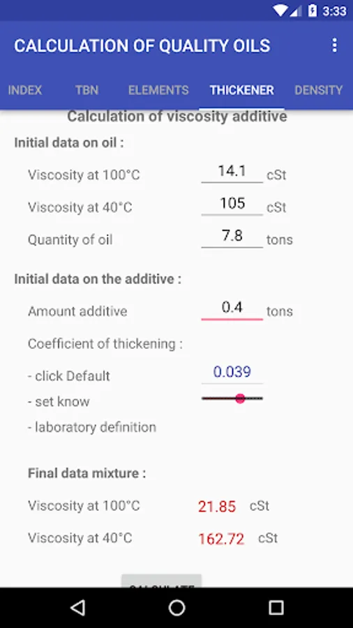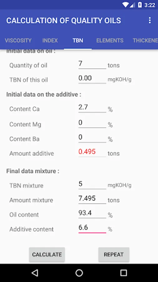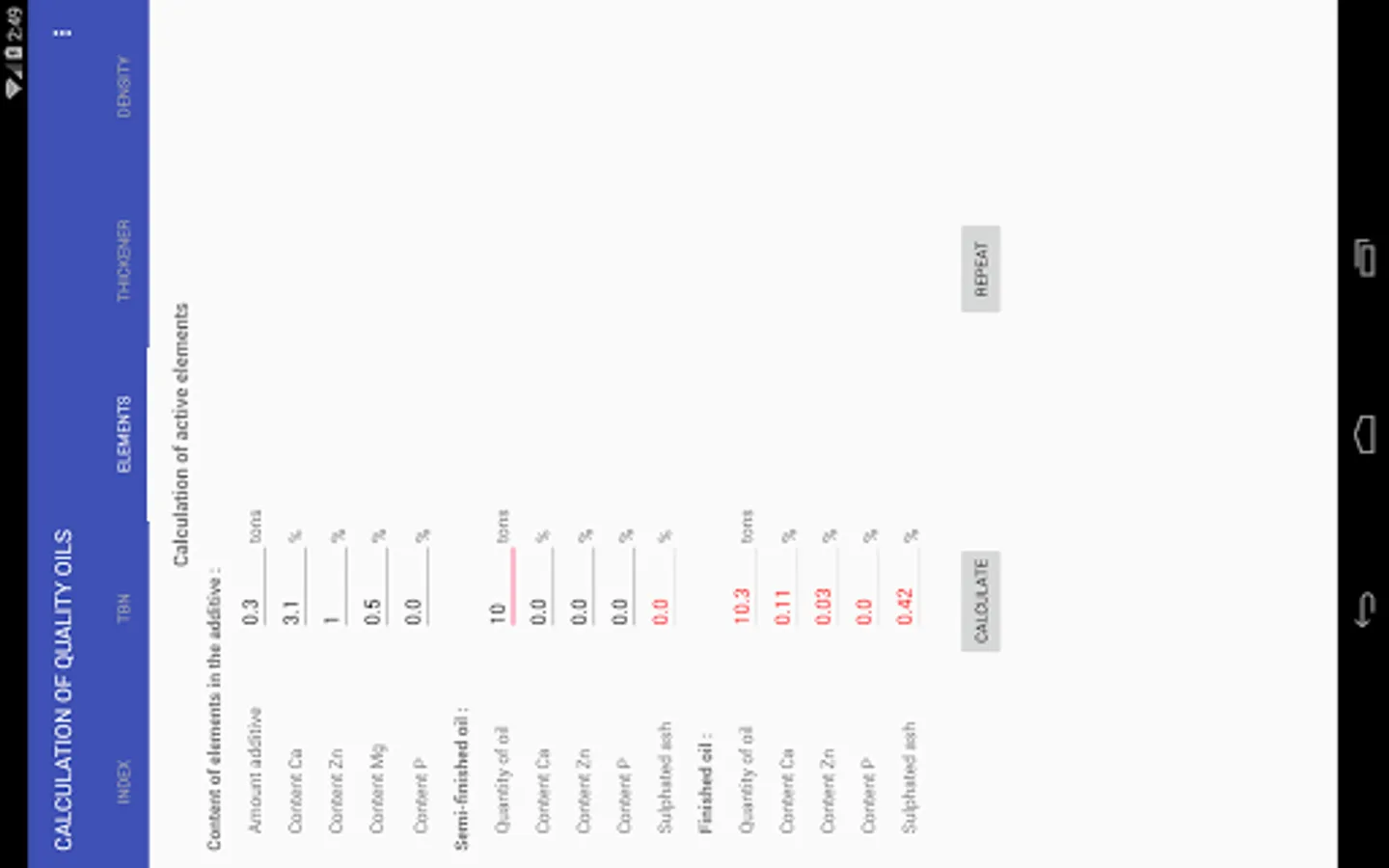 The presented program allows to calculate the predicted values of the quality indicators of technical oils: