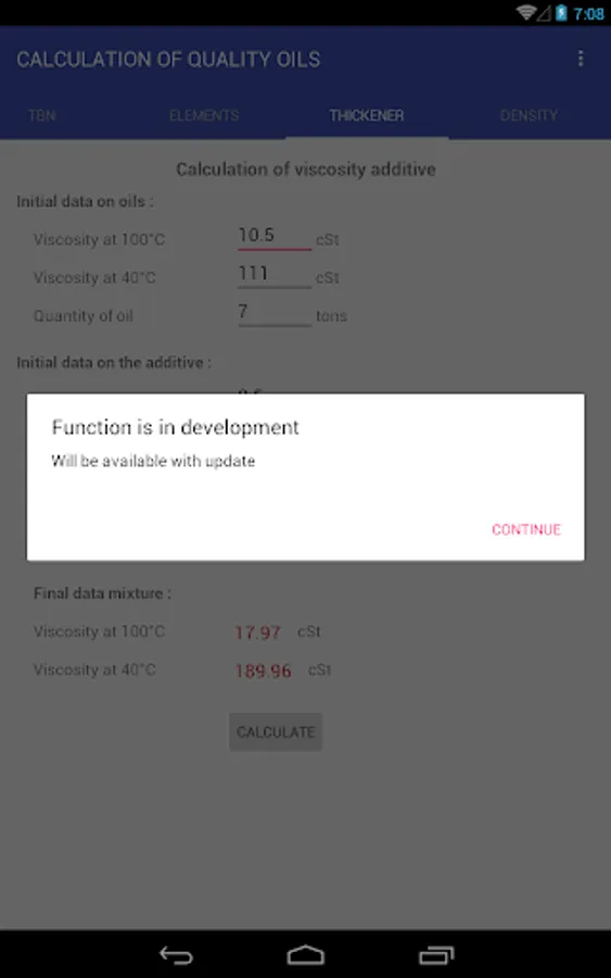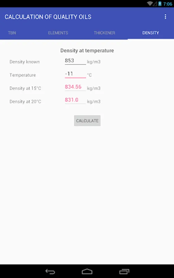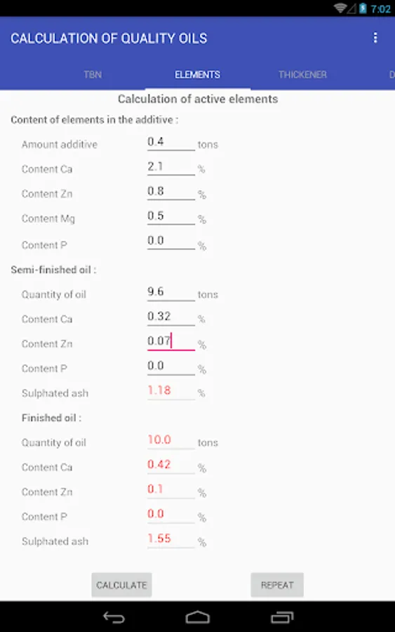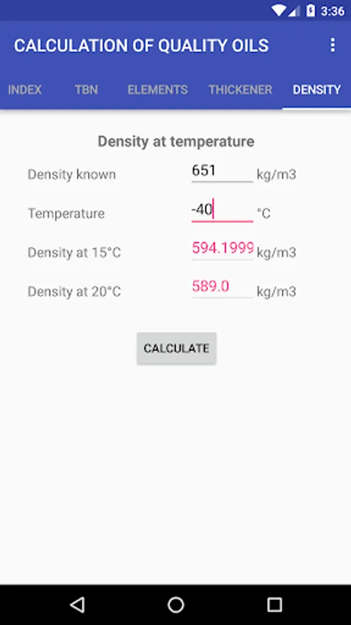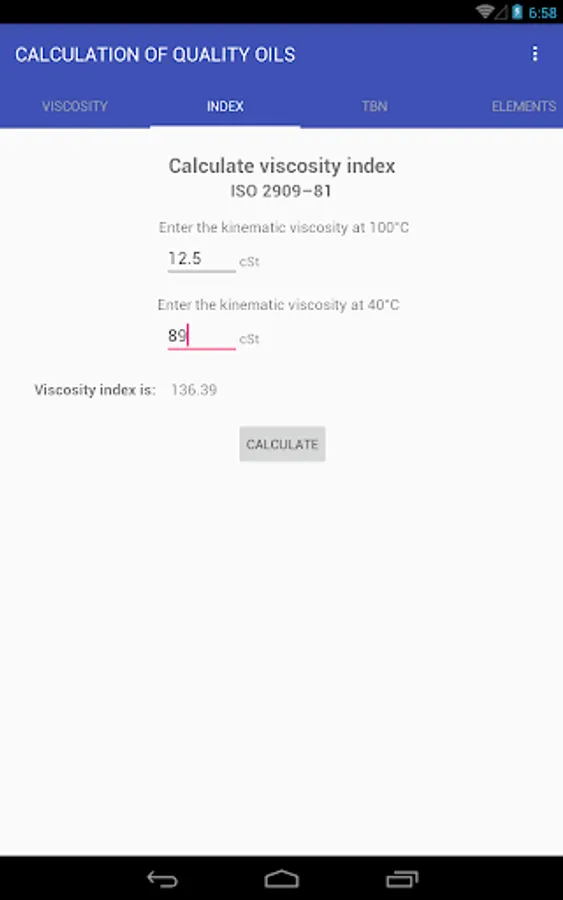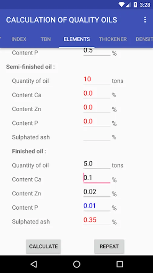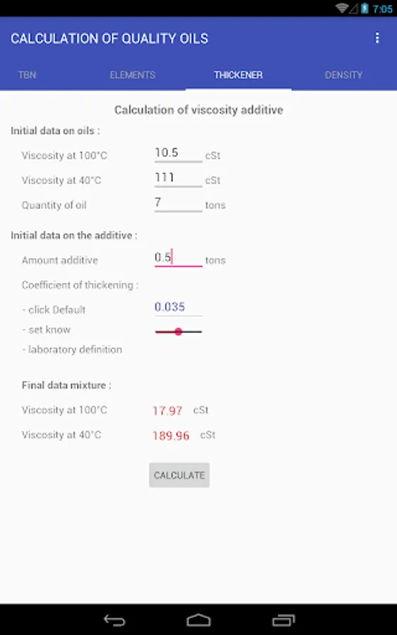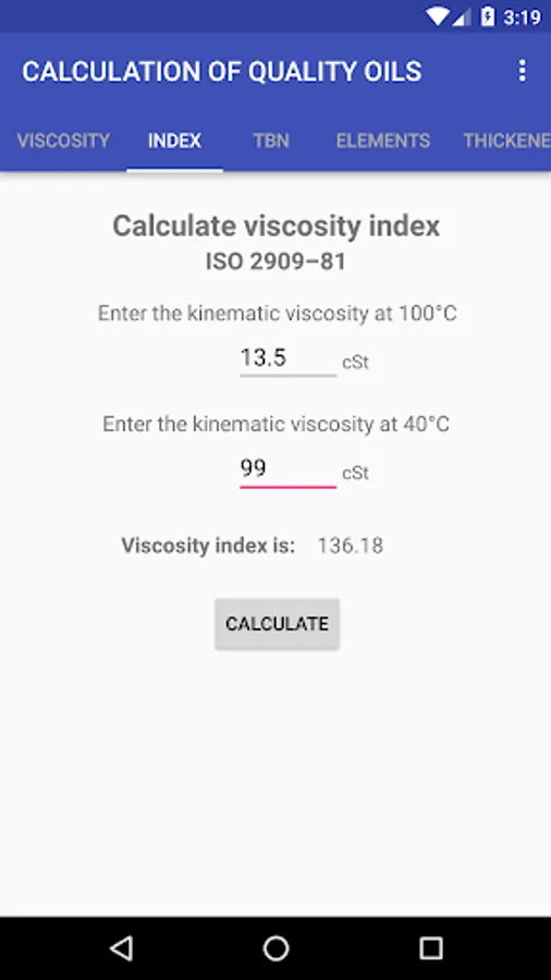 The presented program allows to calculate the predicted values of the quality indicators of technical oils: