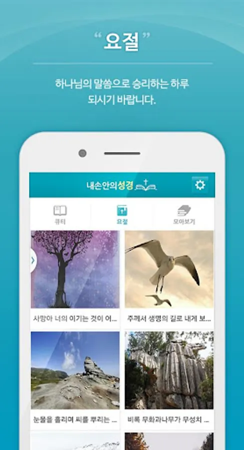 내손안에 성경은 큐티와 요절말씀을 매일 보실수 있습니다.