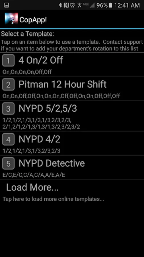* Customize/rearrange the text for the days in the rotation (Allows app to work for any repeating schedule.) Also added some templates that can be modified, and the ability to load them via the internet.