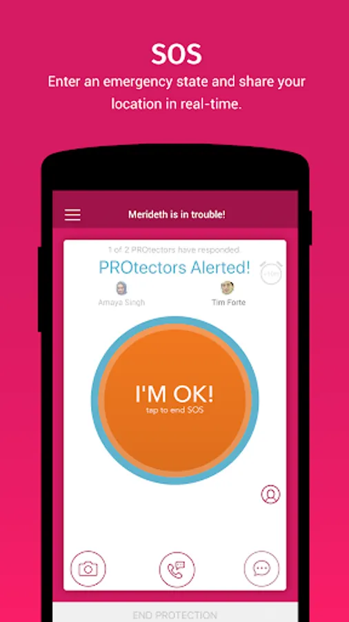 In the event of an emergency, PROtect instantly starts collecting GPS information and shares this with your PROtector helper circle.