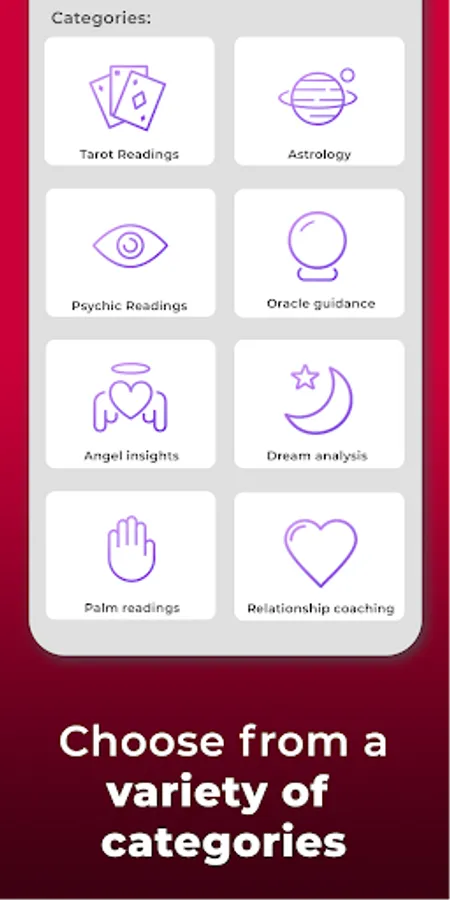 Whether you're looking for an expert in love and relationships, career or something else - we are certain - you'll find a real psychic with valuable insights for you. You will gain peace of mind and the empowerment you need to have accurate insight so you can make the best decisions, have clarity in your thoughts and soul connections in your life. You will have all the answers on your hand just by using our app.
