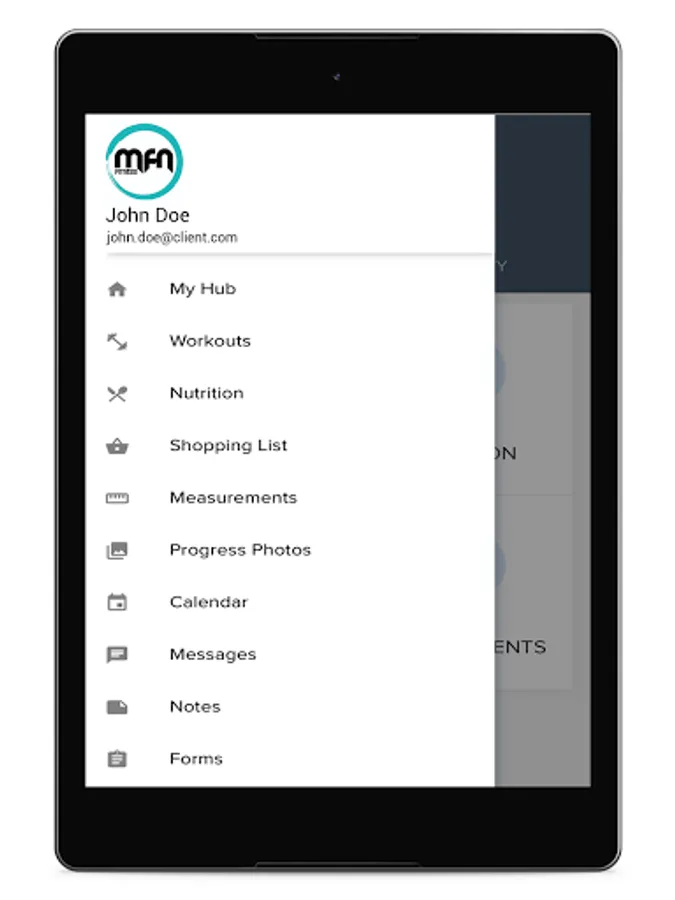 The MFN Fitness app is a web and mobile application which allows users to access workout and nutrition package plans, keep trap of fitness progress, body measurements, progress pictures and communication with a personal trainer; results are also tracked such as body weight, body fat %, distance covered, weight lifted and workouts completed. Users will also have access to high quality exercise videos demonstrating correct form and the nutritional profile of foods can be scanned and used to prevent a nutritional breakdown of the ingredient or meal.