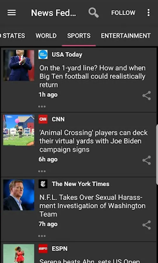You can also follow your favorite topics and get daily articles from the hundreds of newspapers. It also allows you to set the custom alerts on topics of your choice. Once topics are "followed", it will notify you as soon as any news publishes for that topic For example you can follow news on cryptocurrency Bitcoin, Ripple, impeachment etc. You can also follow your favorite celebrities like Tom cruise, roger federer. You can also follow a city or county for local news.