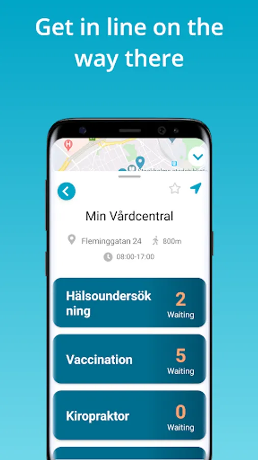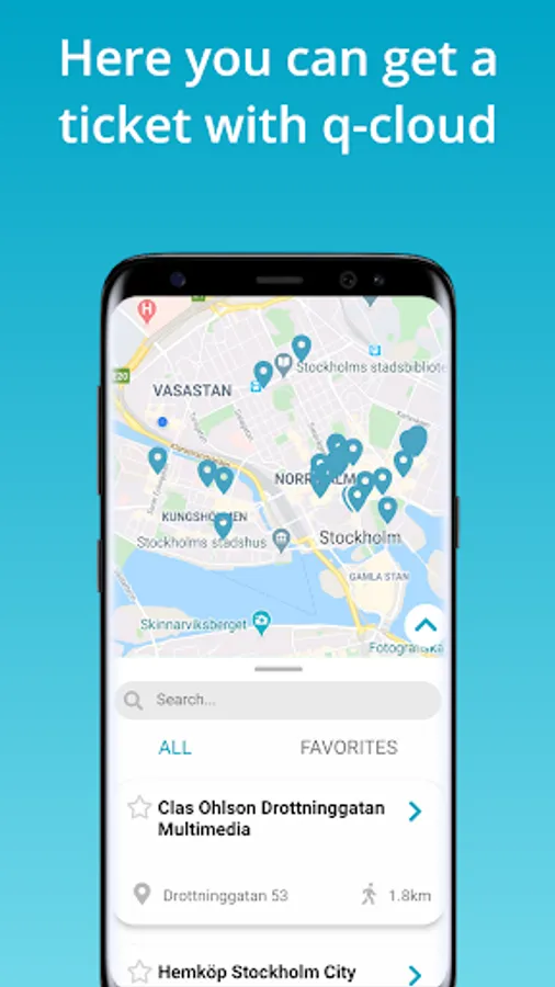 Click on a marker to see more information about that particular store like opening hours and estimated waiting time.