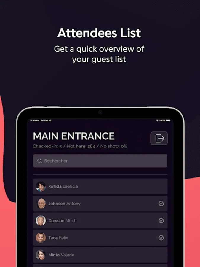 Access to key information: Our hosts and hostesses can view relevant attendee information, such as their position, company, and other details that you have defined through our back office.