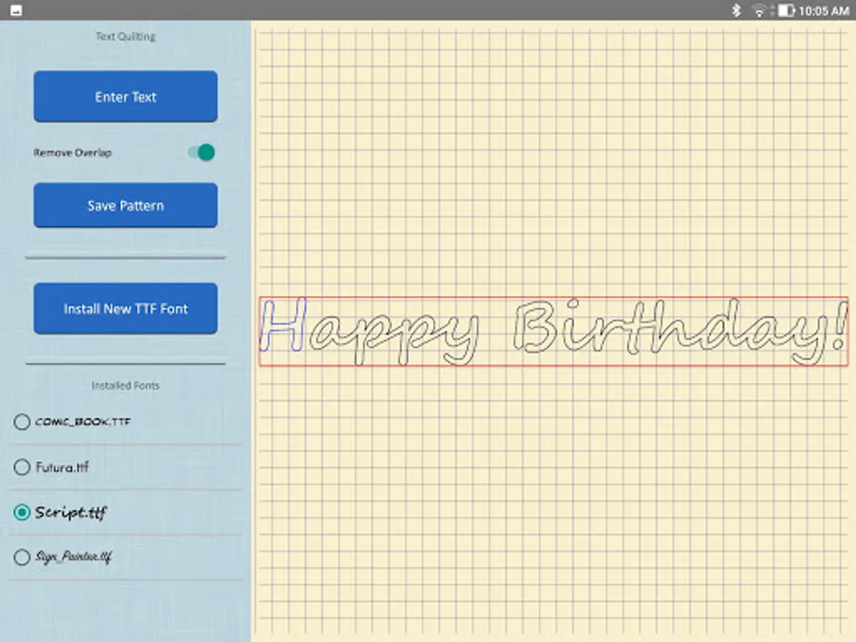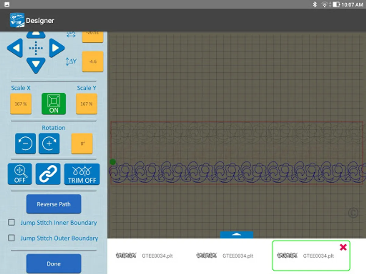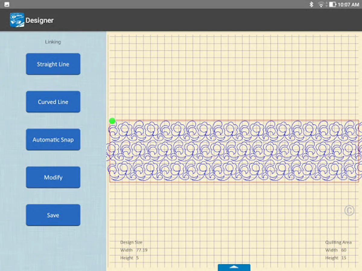 The Pro version of the QBOT V3 app is a companion app for V3-enabled QBOT heads. Includes all the features of the QBOT V3 app and adds several new features. The new Four Point Quick Scale includes margin control for a more professional look. The Smart Fit function with margin control automatically morphs edge-to-edge and border designs into 'less than perfect' sashes and borders. The powerful Text Quilting feature allows you to type any text and QBOT will automatically convert the text to a quilting design ready for quilting. Four fonts are included with the app and any True Type font can be installed for your own custom effect. Overlapping letters are automatically merged at the push of a button. The new Designer feature allows you to build, link, and trim multiple rows of edge-to-edge designs together - along with direction reversal - so you can quilt multiple rows at one shot.