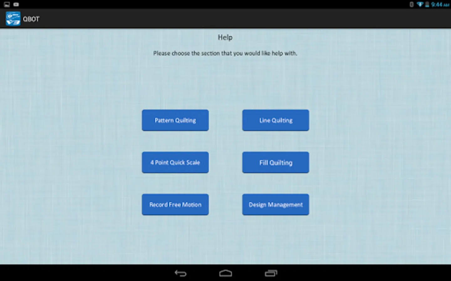 QBOT V3 is a companion app for V3-enabled QBOT heads. QBOT V3 offers unparalleled control of the quilting process without the steep learning curve. The interface is fresh and intuitive. Features include: Inner boundary 'knock out' for quilting around appliqué or blocks, voice recognition to help you keep your eyes on the quilt, Intuitive chain feature that lets you chain your edge-to-edge design if the original is just an element, user selectable tie off stitches – you decide when to use them and the length of stitching, an amazing %restart routine – allowing you to resume quickly after a thread break, an Overlay routine that allows for modifications like rotation, scale, position, and mirroring, just to name a few of the quilting features. Within design management, you can file your designs in any fashion you wish. A node reduction routine allows you to tame those unruly designs. Line Quilting gives you the ability to perform stitch in the ditch – on the go! The Crosshatch Fill feature is remarkable - allowing fills around appliqué or other quilting designs. Inner boundaries allow you to quilt around appliqué, embroidery, or block elements. Trim to outer boundary allows you to quilt artistic quilts without the robotic look. You will wonder how you quilted without it!