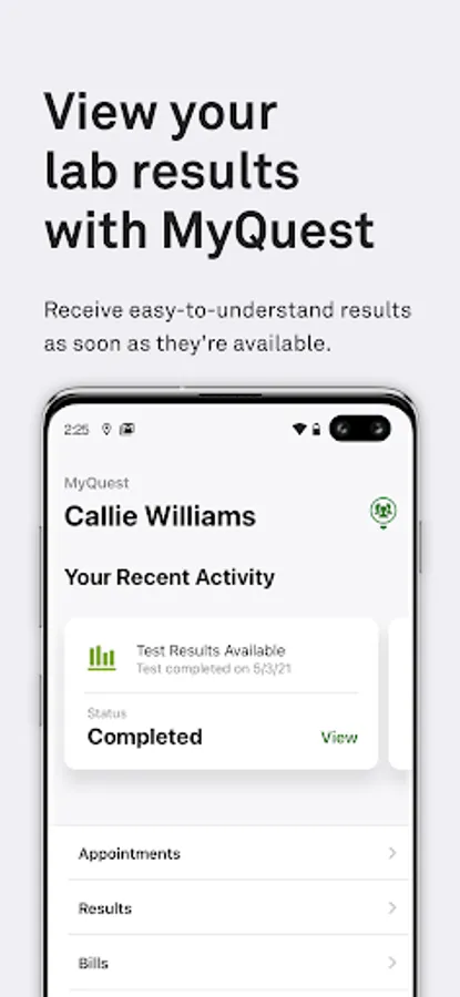 With the MyQuest app from Quest Diagnostics, all your lab results and appointments are at your fingertips – so you have the information you need to stay healthy: