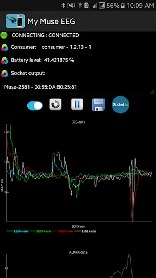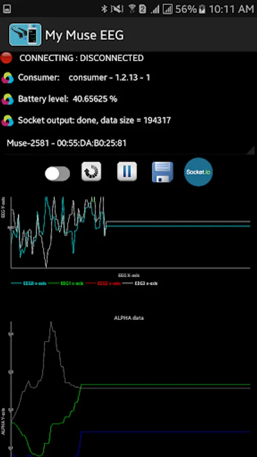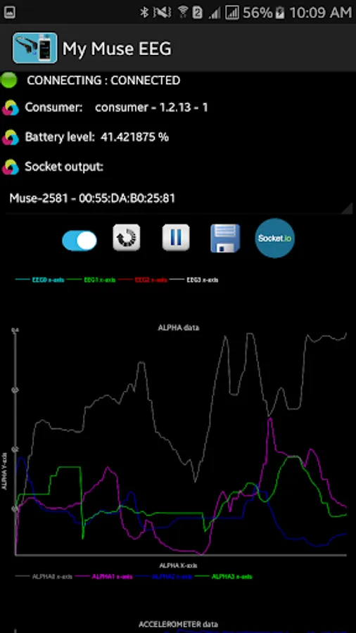 Visualize what's going on in your brain and save the EEG signals related to the last version of muse EEG device (2017) in XML format into the internal memory of your smart phone or send signals to your laptop through socket IO.