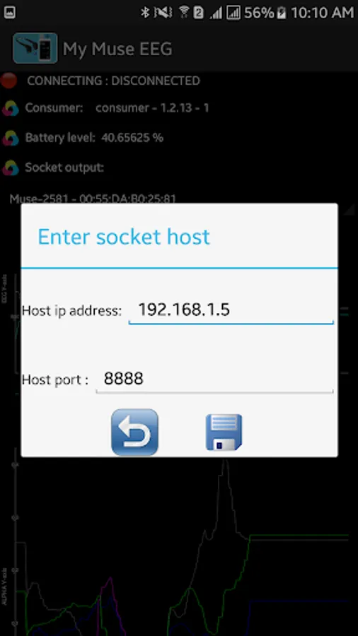 of the socket server that receives the muse EEG data.