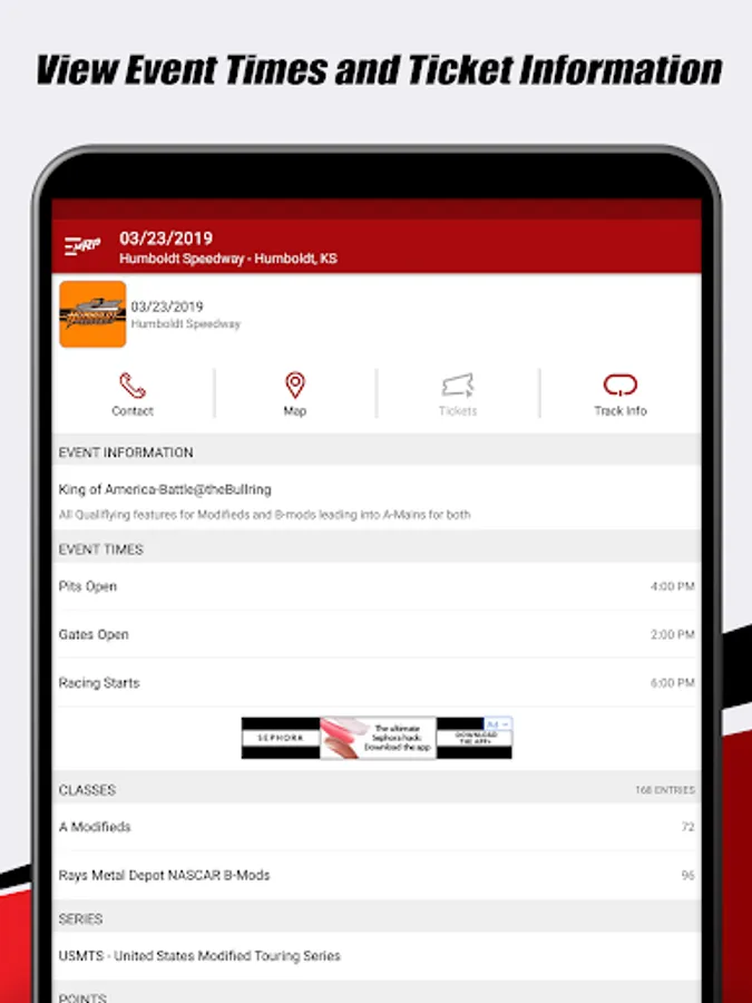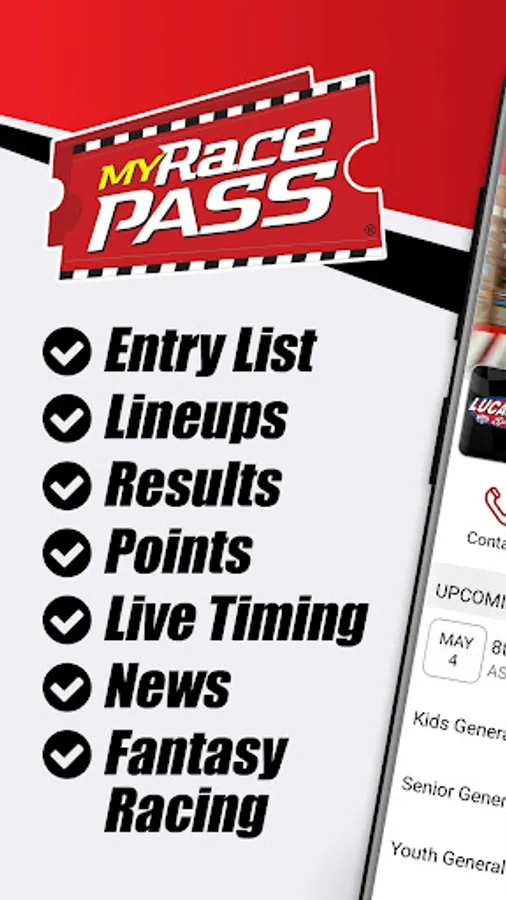 MyRacePass (MRP) allows you real-time access to entry lists, lineups, results, point standings, live timing, news, fantasy racing and more from participating tracks, series, and drivers across the United States and Canada. Create your list of favorite tracks, series, and drivers for quick access and follow along with all the action on race night! MyRacePass provides race timing and live scoring for hundreds of race tracks and series across the United States and Canada.
