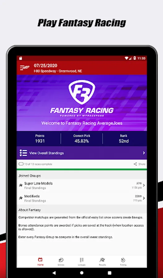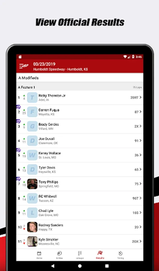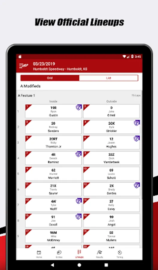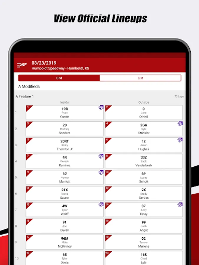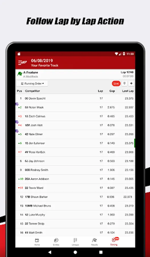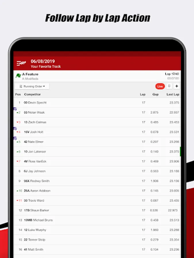 - Gain quick access to lineups, results, and live lap times