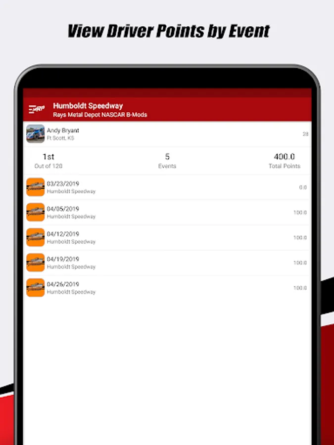 - WISSOTA and USRA National Points in the palm of your hand