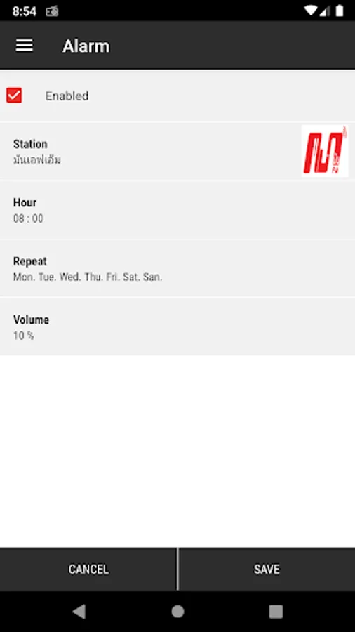 + Use your app as Ann alarm by choosing the station to broadcast, activation days and playback volume.