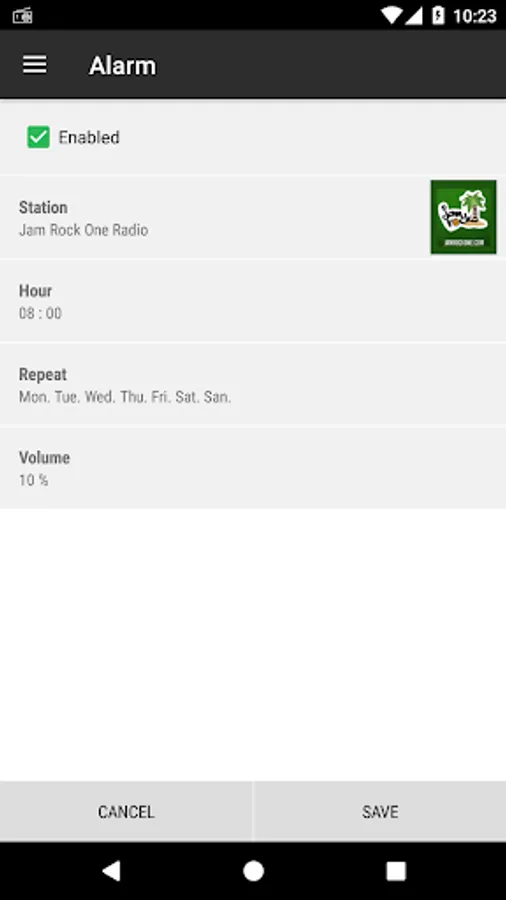 + Use your app as Ann alarm by choosing the station to broadcast, activation days and playback volume.