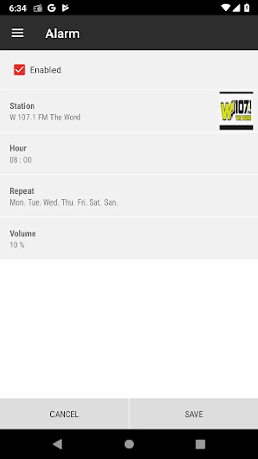 + Use your app as Ann alarm by choosing the station to broadcast, activation days and playback volume.