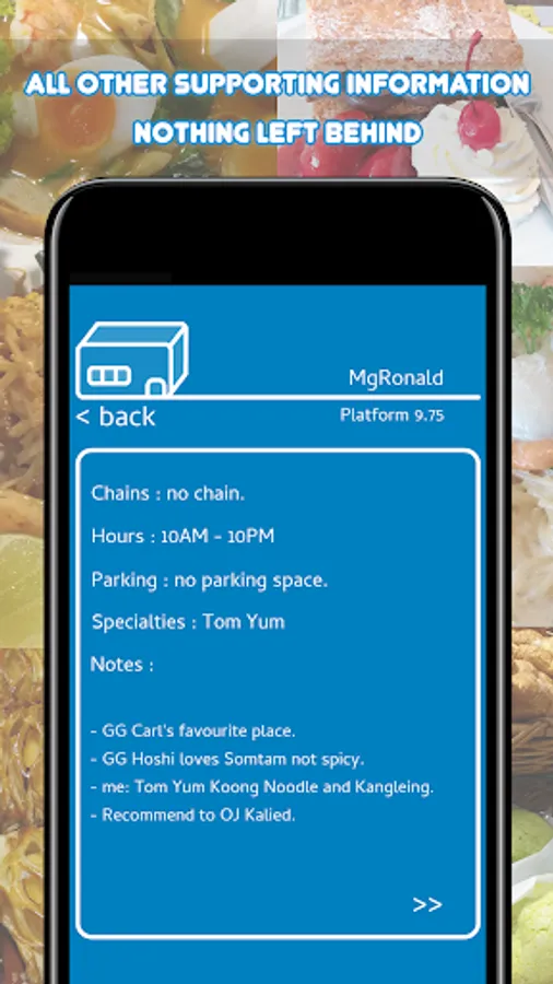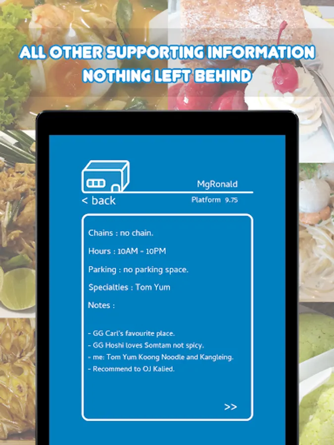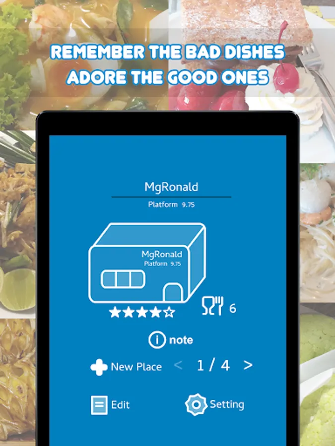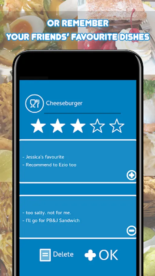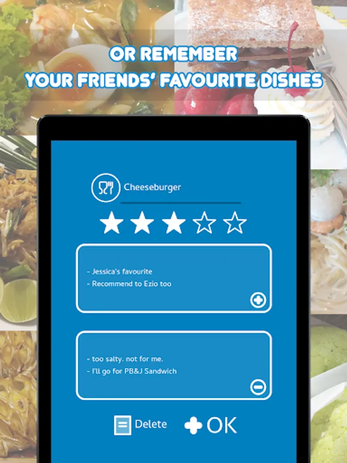• Record your go to restaurant for the good dishes and the bad dishes.