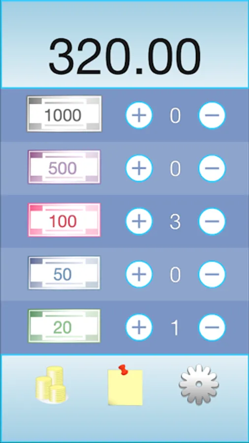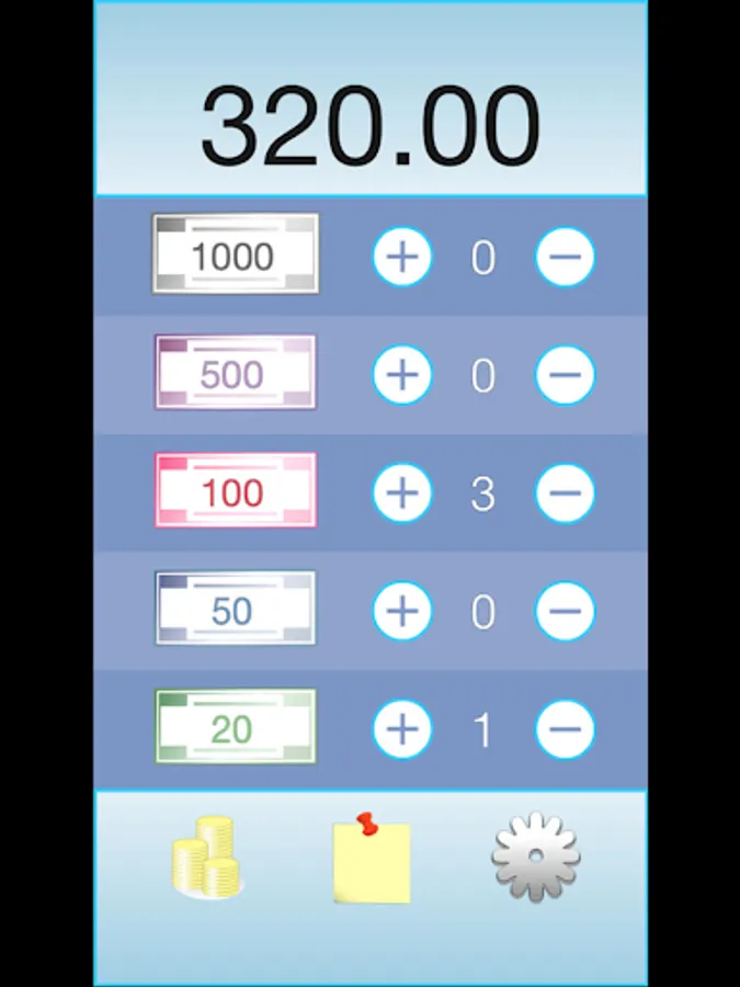 • Record the amount of money in your wallet by banknotes and coins.