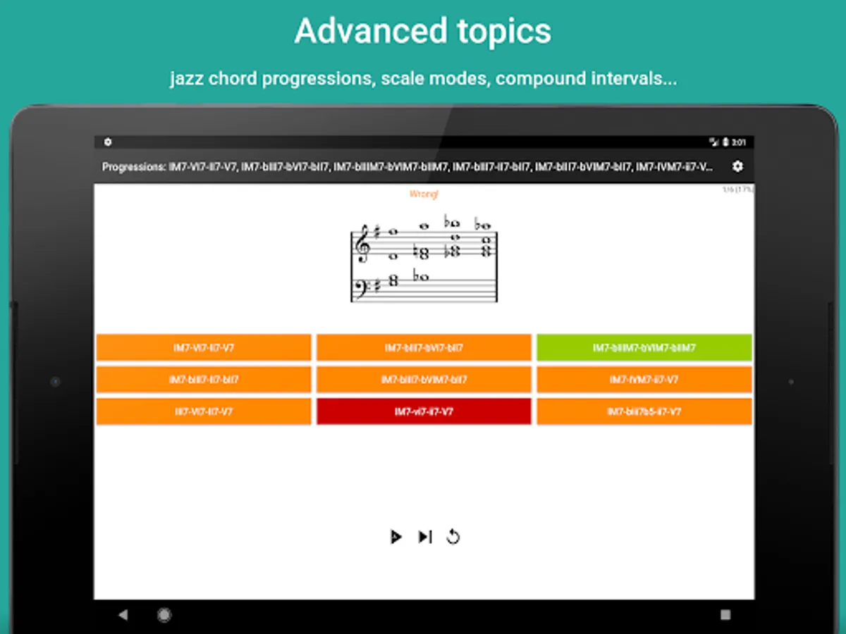 - Chords training - including 7ths, 9ths, 11ths, inversions, open and close harmony