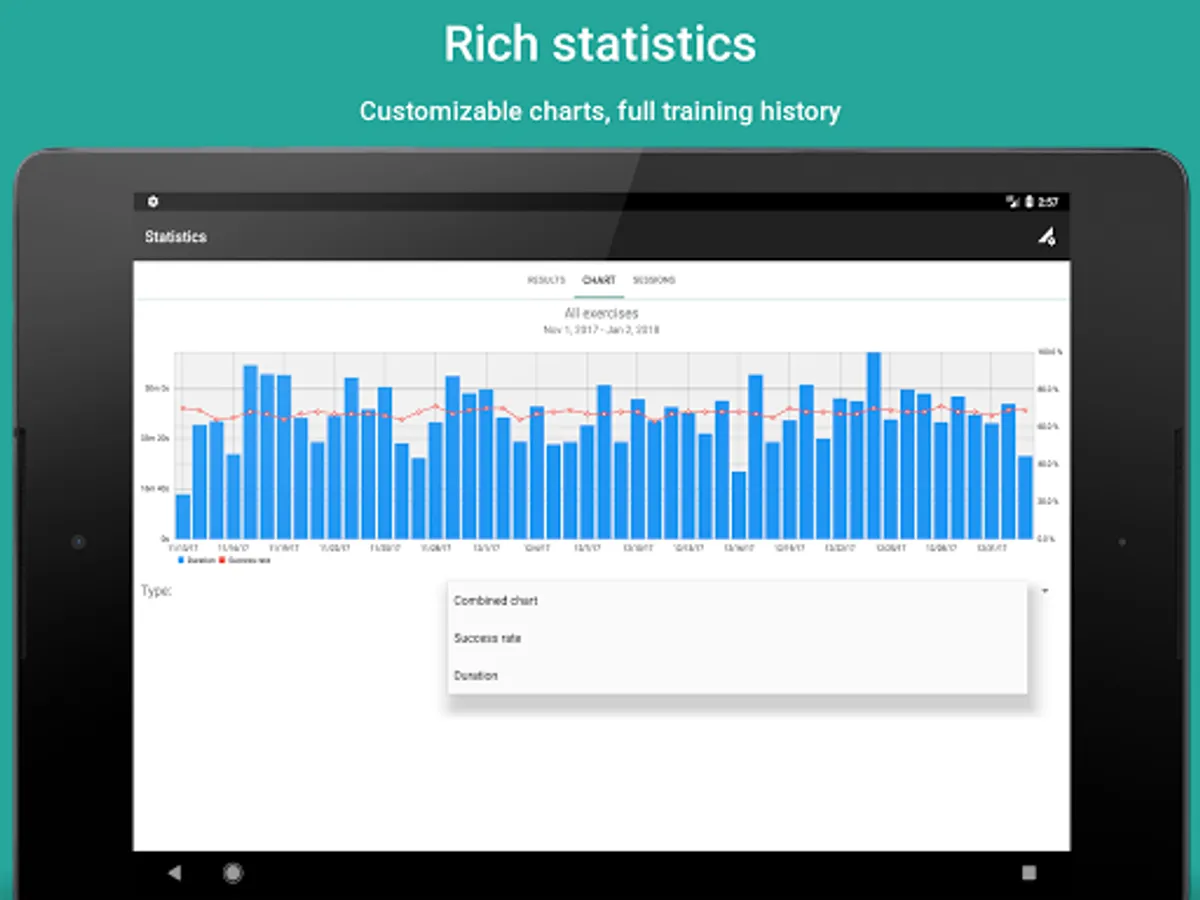 The app provides updated statistics to track your progress and can be easily synced to other devices. Use the statistics reports to see your strengths or weaknesses.