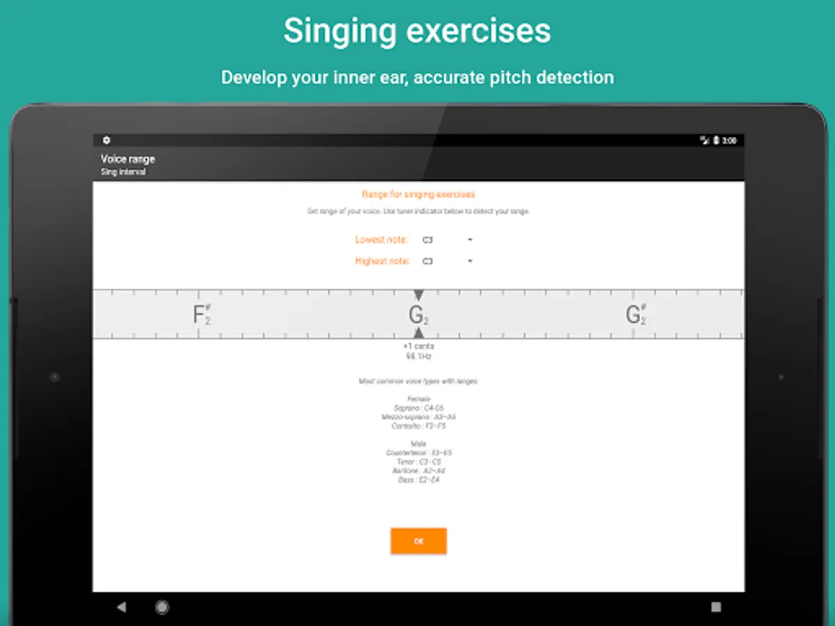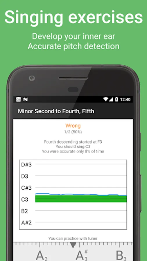 MyEarTraining app works by combining different ear training approaches like isolated sounds, singing exercises, and functional exercises (sounds in tonal context) to train your ears, thus maximizing results. It’s designed for musicians who want to improve their relative pitch recognition abilities and get one step further towards perfect pitch.
