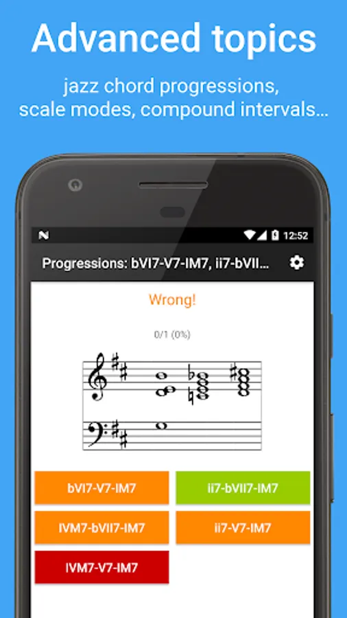Whether you are new to music theory, need to prepare for an intensive school exam, or are an experienced musician, there are over 100 aural exercises to help you push your music skills. Users with no ear training experience begin with simple perfect intervals, major vs. minor chords and simple rhythms. Advanced users can progress through seventh chord inversions, complex chord progressions and exotic scale modes. You can use tonal exercises with solfeggio or singing exercises to improve your inner ear. Input answers using buttons or virtual piano keyboard. For major music topics, MyEarTraining offers different courses and lessons including basic music theory. Interval songs and practice piano are also included.