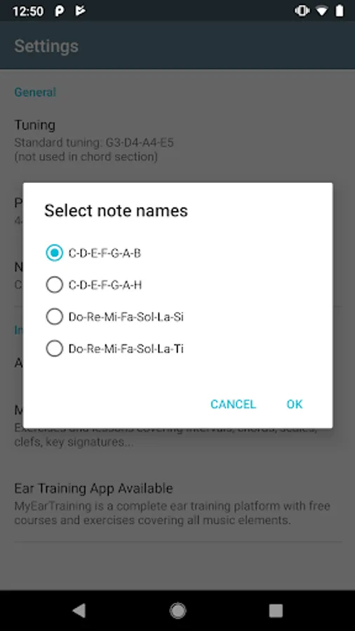 Various note naming schemes: English (CDEFGAB), German (CDEFGAH), Latin (DoReMiFa...)