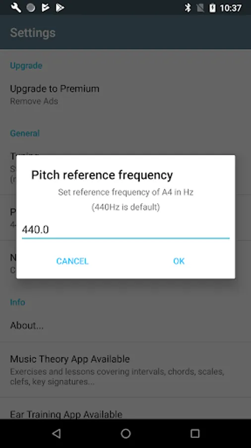 Adjustable reference note frequency (A440).