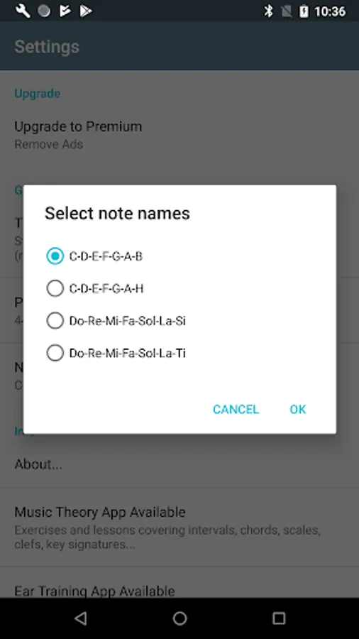 Various note naming schemes: English (CDEFGAB), German (CDEFGAH), Latin (DoReMiFa...)