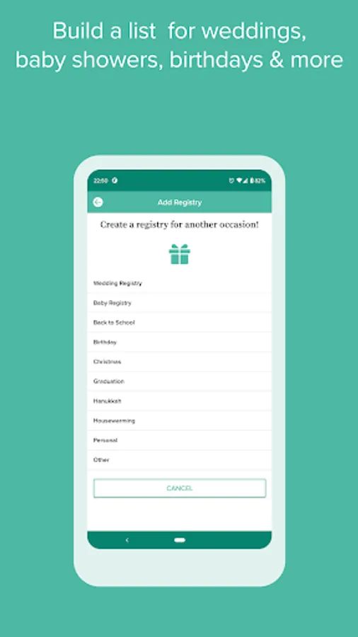 Whether you’re registering for a wedding, baby shower, birthday, graduation, anniversary, housewarming party, or another life event, our intuitive interface will have you zipping around the app, adding gifts in no time.