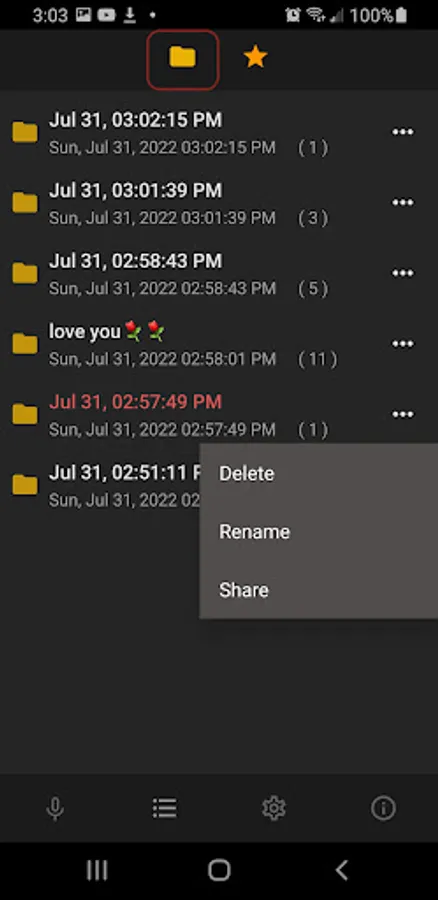 *Recordings are automatically saved to their own folders and can be easily renamed, shared and deleted, and it's easy to manage all your recordings.