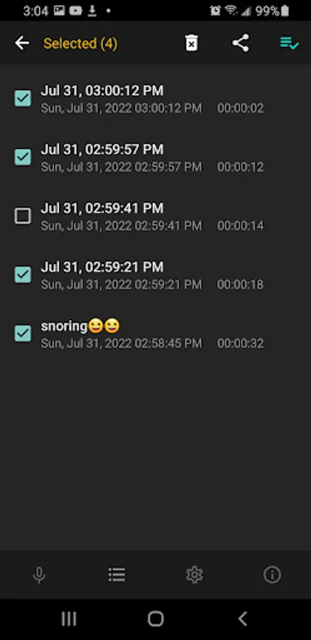 * You can add a recording to favourites, and rename, share or delete it while listening, or you can share/delete multiple recordings in batches.
