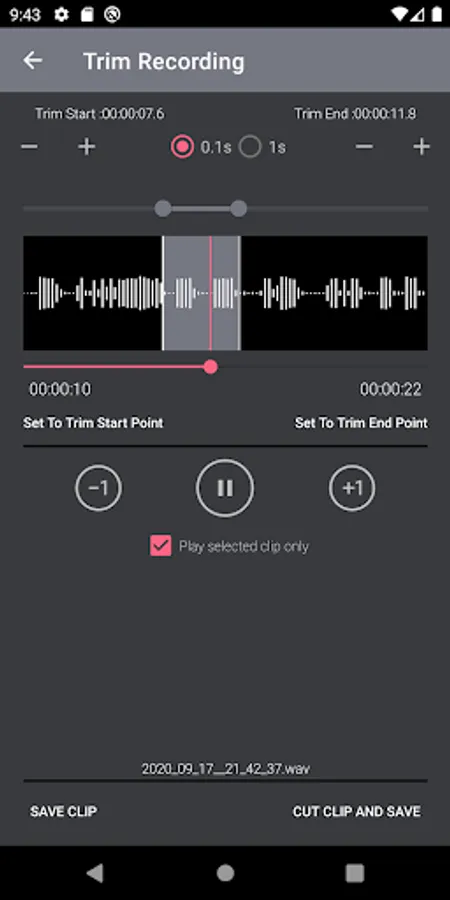 - Trimming recording with 0.1 second accuracy. (Paid feature)