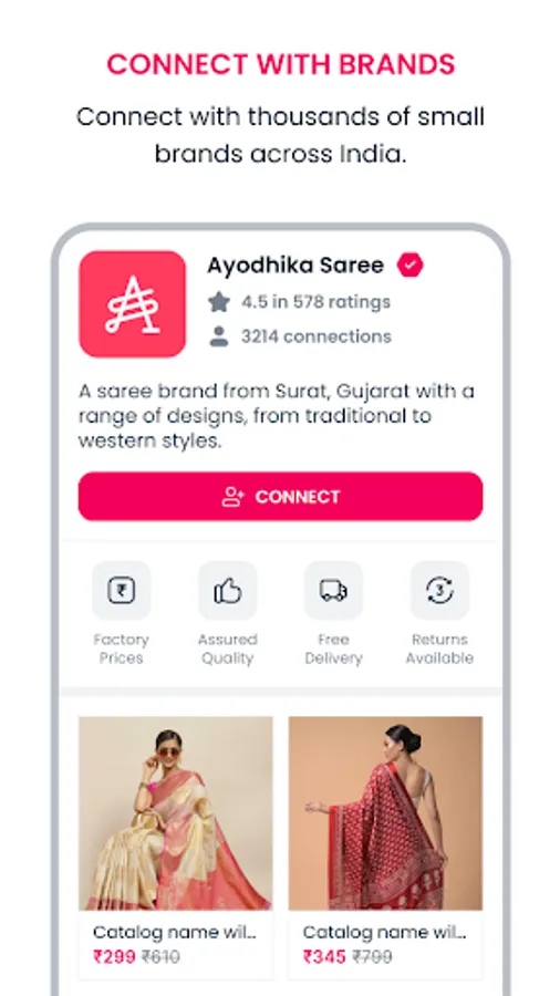 Browse: Search through 5 lakh+ high-quality products like sarees, kurtis, lehengas, gowns, bedsheets, etc. at wholesale prices.