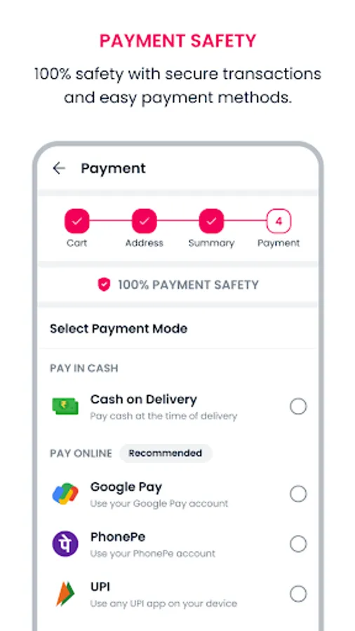 - Various payment methods like Google Pay, PhonePe, Paytm and more