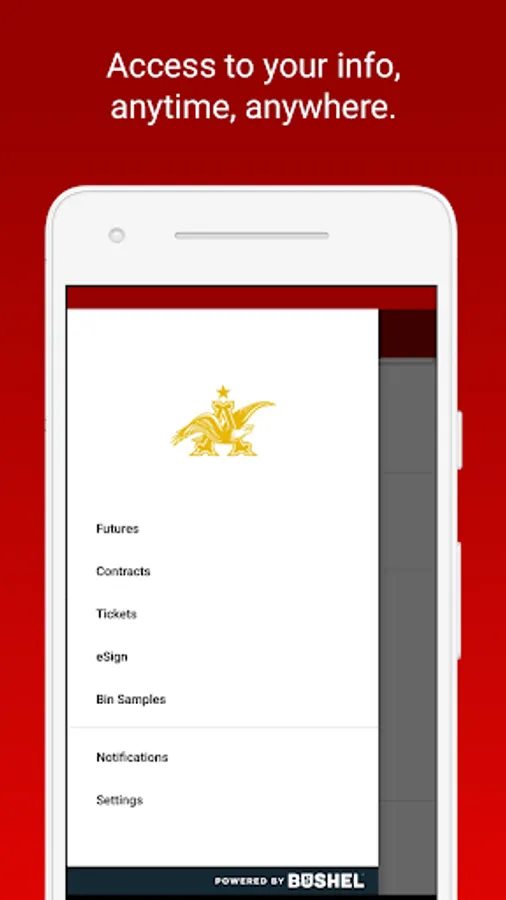 The Busch Ag app is free, secure, and developed by the industry-leading Bushel platform.