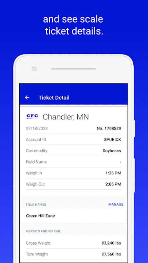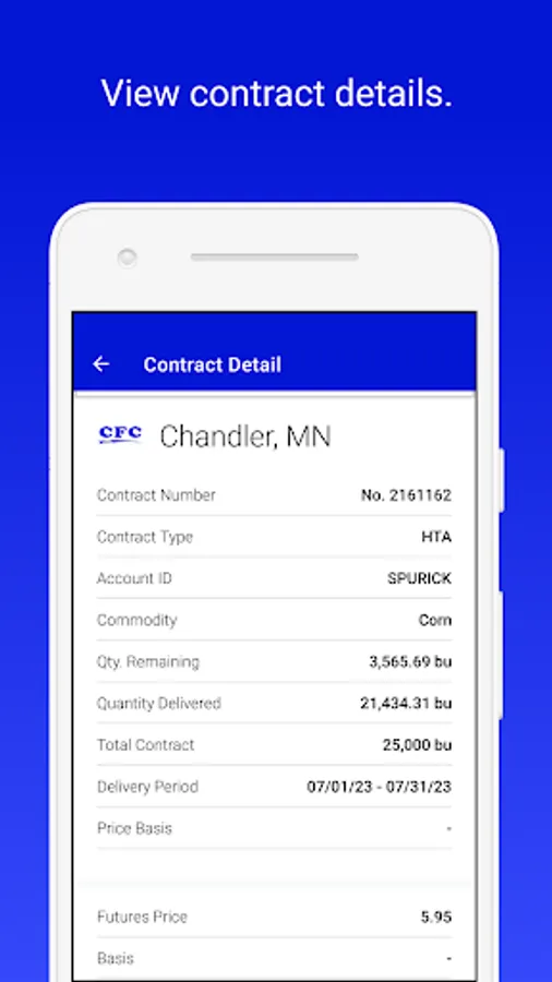 The Chandler Feed Co. app is an essential mobile solution that connects your operation to your grain facility, providing real-time, actionable information to help you manage and grow your business.