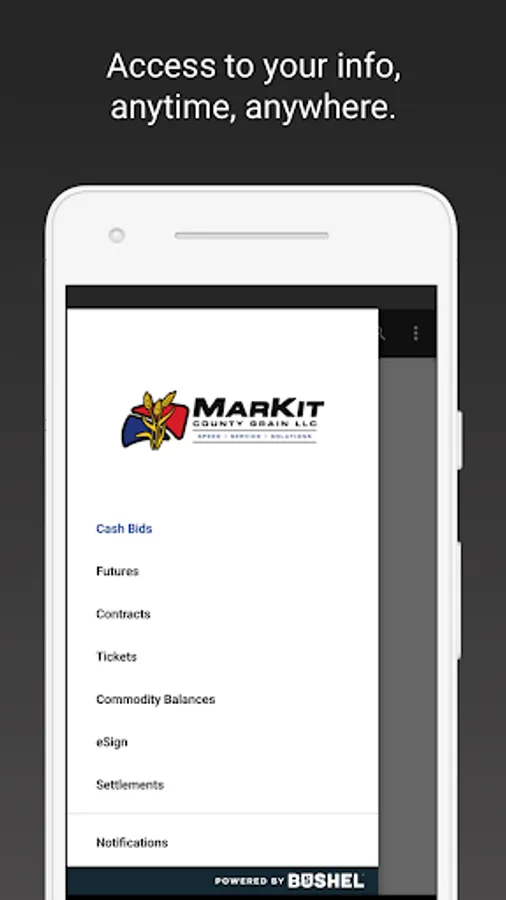 The MarKit County Grain app is free, secure, and developed by the industry-leading Bushel platform.